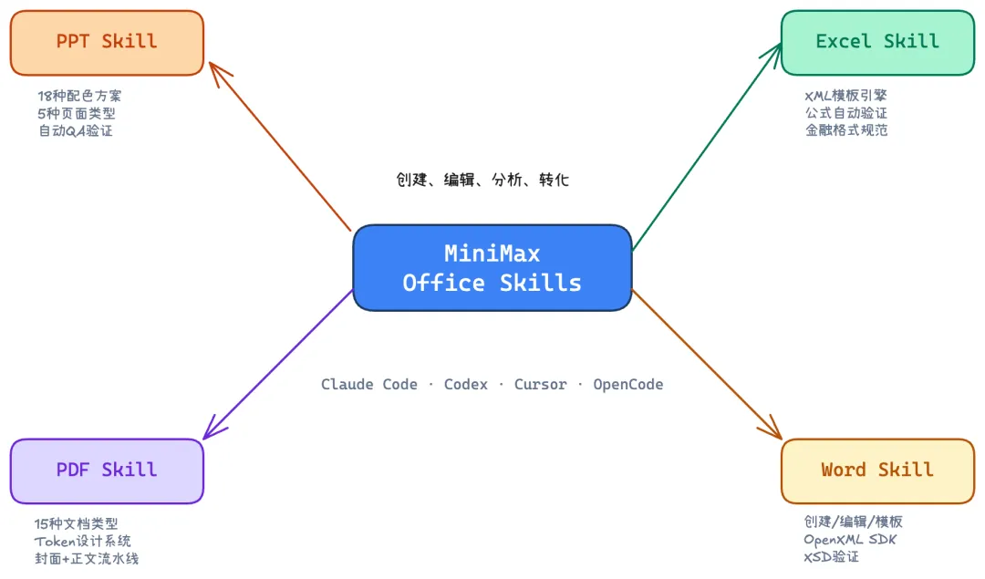 最近发现minimax官方开源了一套office全家桶skills,包括ppt、excle、pdf、word,我实测了几个场景,效果确实超出预期;