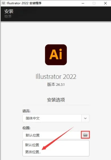 3.如需修改安装路径,点击【文件夹图标】,选择更改位置。