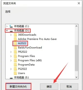 4.选择需要安装的磁盘,本例安装到D盘,点击【新建文件夹】并命名,点击确定。