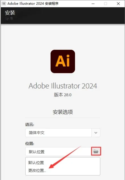 3.如需修改安装路径,点击【文件夹图标】,选择更改位置。