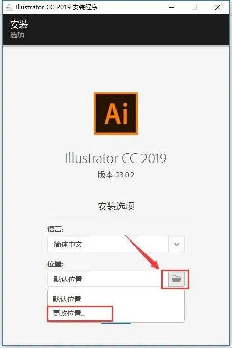 3.点击文件夹小图标,然后选择更改位置。