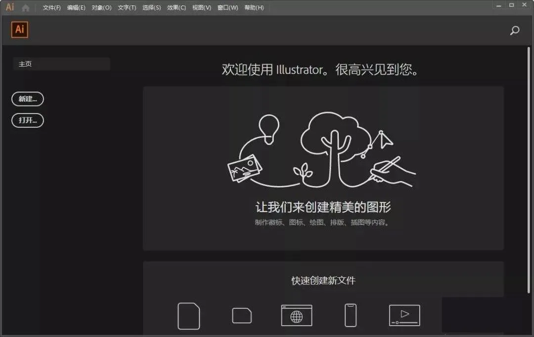 9.AI CC 2019直装版安装完成,打开界面如下。
