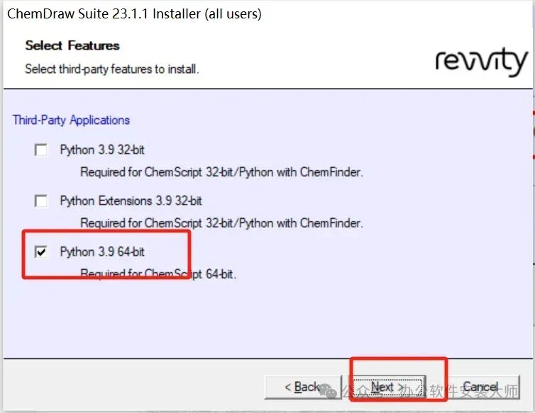7.勾选【ChemDraw Collections】和【ChemScript...64bit】,再点击【Next】
