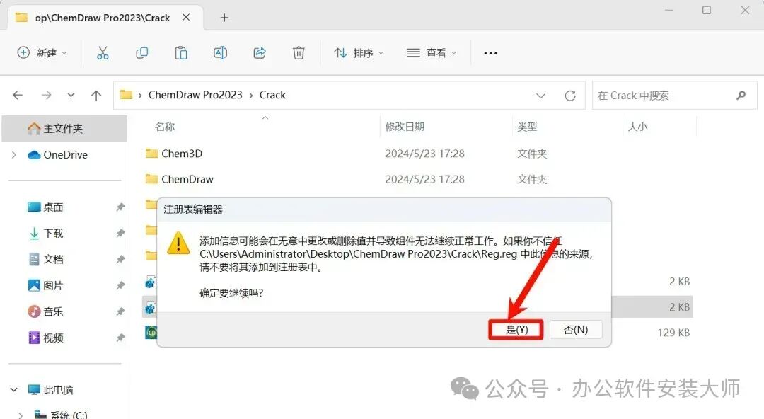 17.再次返回【Crack】文件夹,双击运行【Reg 1.reg】文件