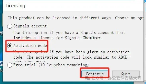 25.点击【Activation code】,然后点击【Continue】