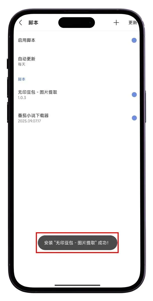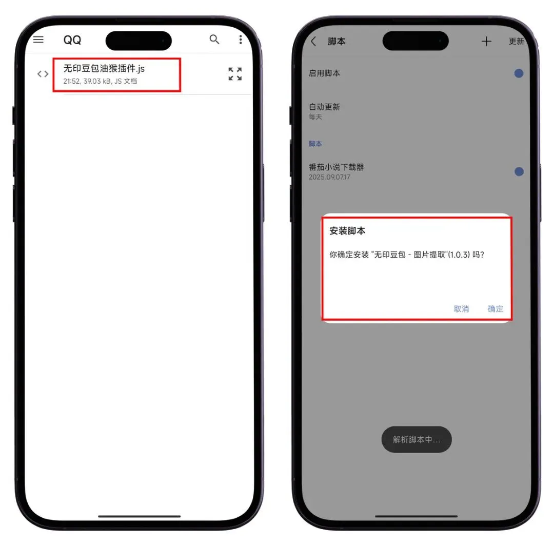 将下载好的脚本插件 【 无印豆包油猴插件.js】 导入到你的手机浏览器中
