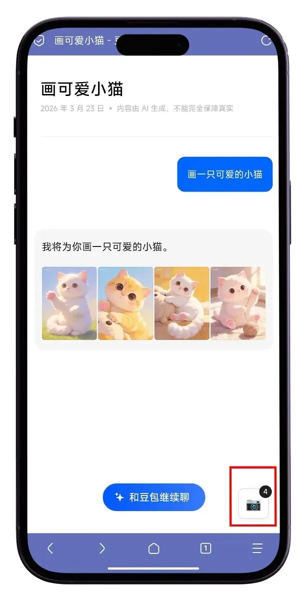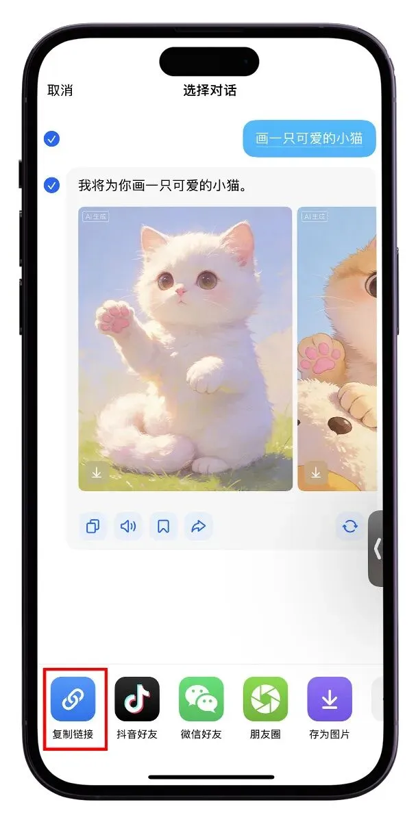 图片: 在豆包APP中打开生成的图片,点击分享获取链接。