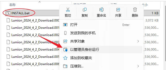 4.右键以管理员身份运行INSTALL安装程序。
