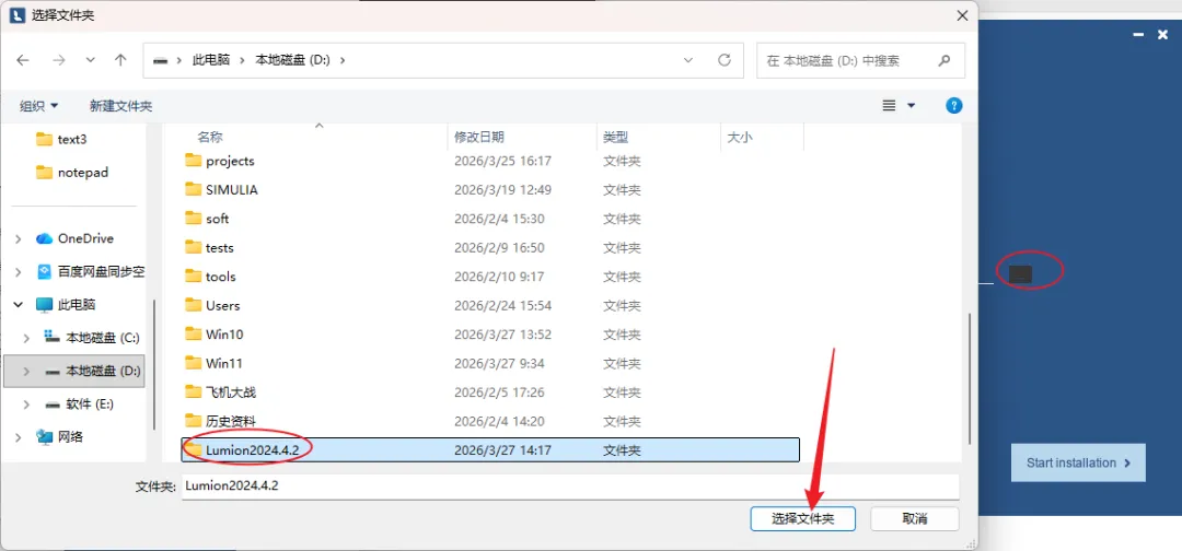 5.点击【…】选择软件安装位置(建议不要安装在C盘,可在D盘或其它磁盘下新建一个“Lumion2024.4.2”文件夹)。