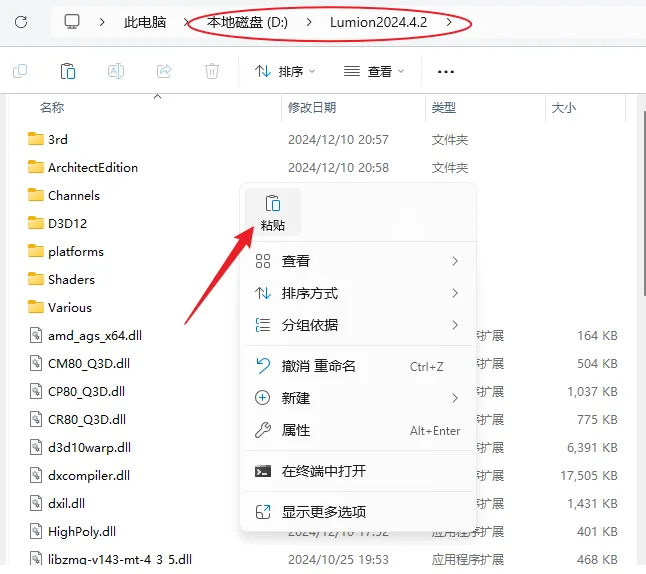 11.打开图示路径,在空白处右键粘贴。