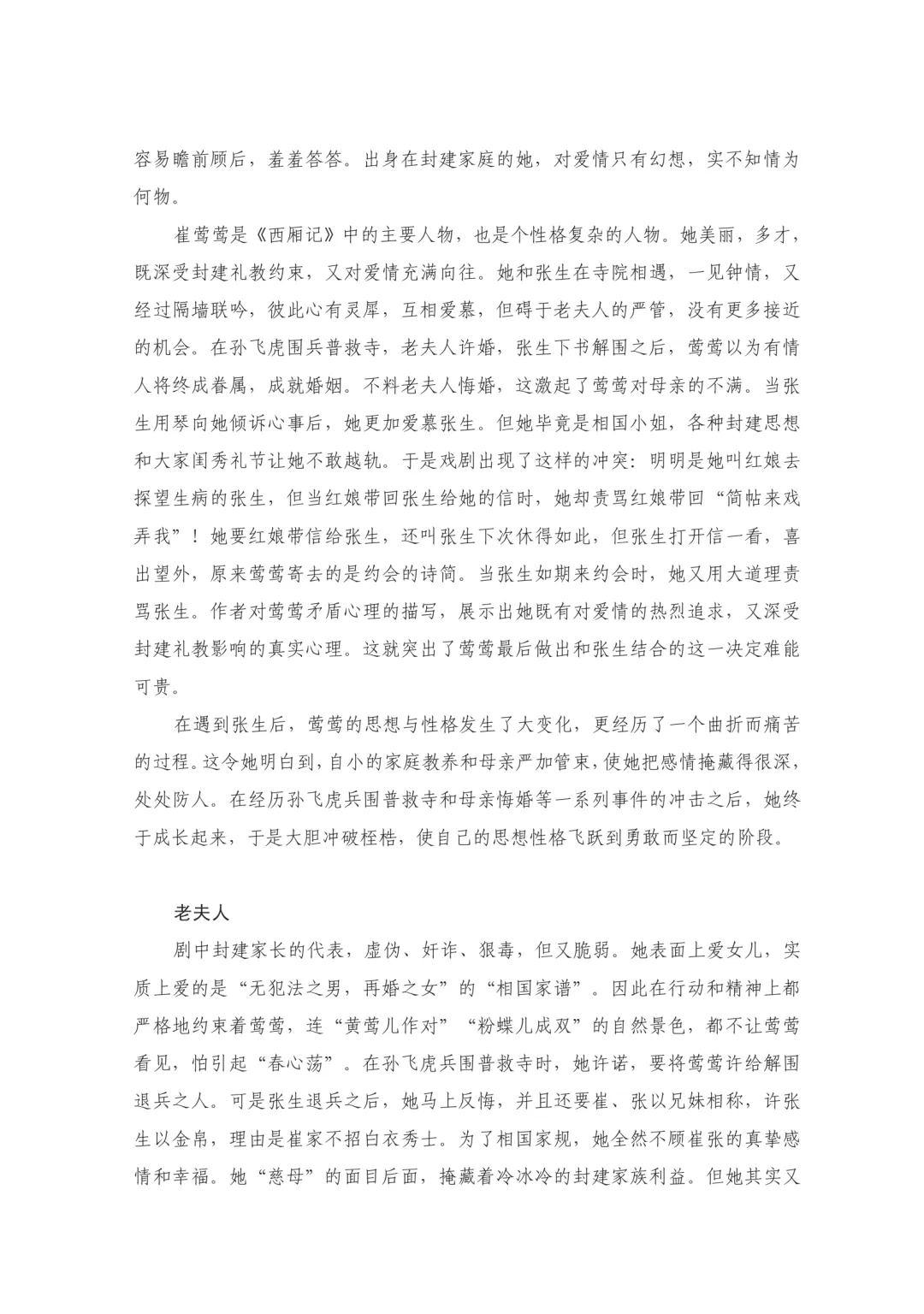 元代时王实甫基本根据这部诸宫调将《西厢记》改编成多人演出的戏剧剧本,使故事情节更加紧凑,融合了古典诗词,文学性大大提高,但将结尾改成老夫人妥协,答应其婚事,大团圆结局。这部剧本作者说法不一,有人说是关汉卿所作,也有人说是关作王续,或王作关续,王作无名氏续,但认为是王实甫所作的说法比较公认。