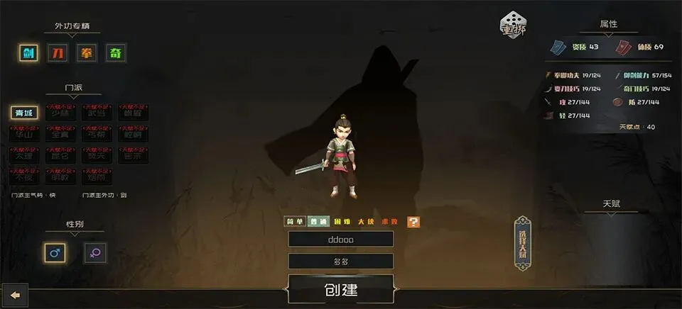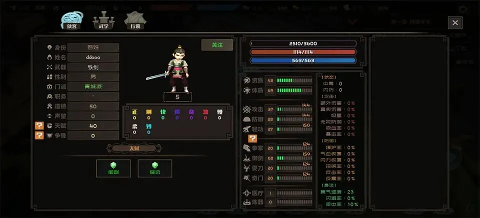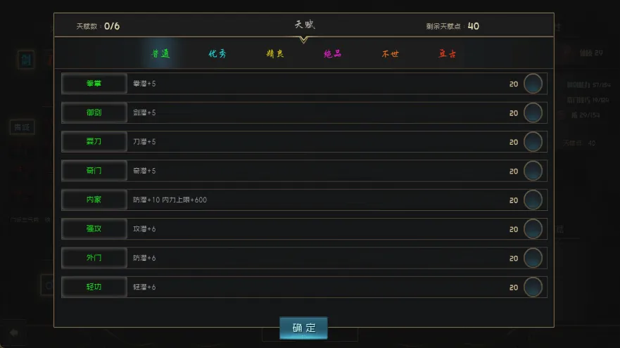 2、创建角色时务必留意“资质”属性,建议资质值至少达到90以上,这样才能学习完整武学体系。游戏中的武功品质从低到高依次为:白、绿、蓝、黄、紫、橙、红。高资质不仅影响学习上限,也直接决定了武功威力的发挥空间。