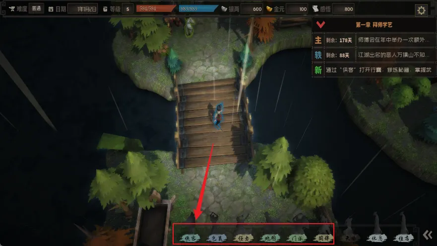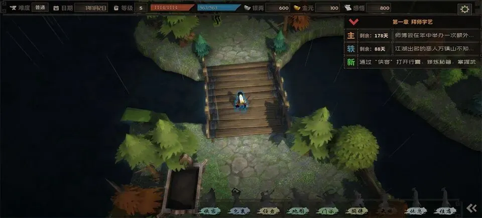 6、经过两个月的历练,就能着手进行支线任务。推荐挑战“襄阳野林”的“万镇山”,不仅能获得“吐纳法”内功秘籍,还有天赋点奖励。完成首个支线后即可算是真正入门。此时可选择接取掌门的送信任务、继续闭关或与其他弟子切磋,灵活安排进度。送信任务能积累贡献值,用于兑换心仪秘籍。