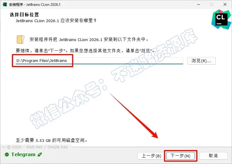 4.选择软件安装路径,建议和教程中的保持一致,本例安装到D盘(将路径地址中的首字符C改为D表示安装到D盘,安装路径不要出现中文),点击“下一步”
