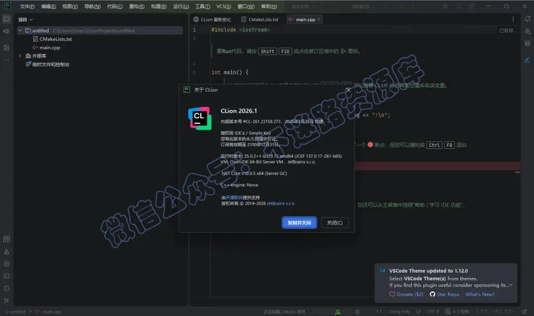 公众号关键词回复:CLion
