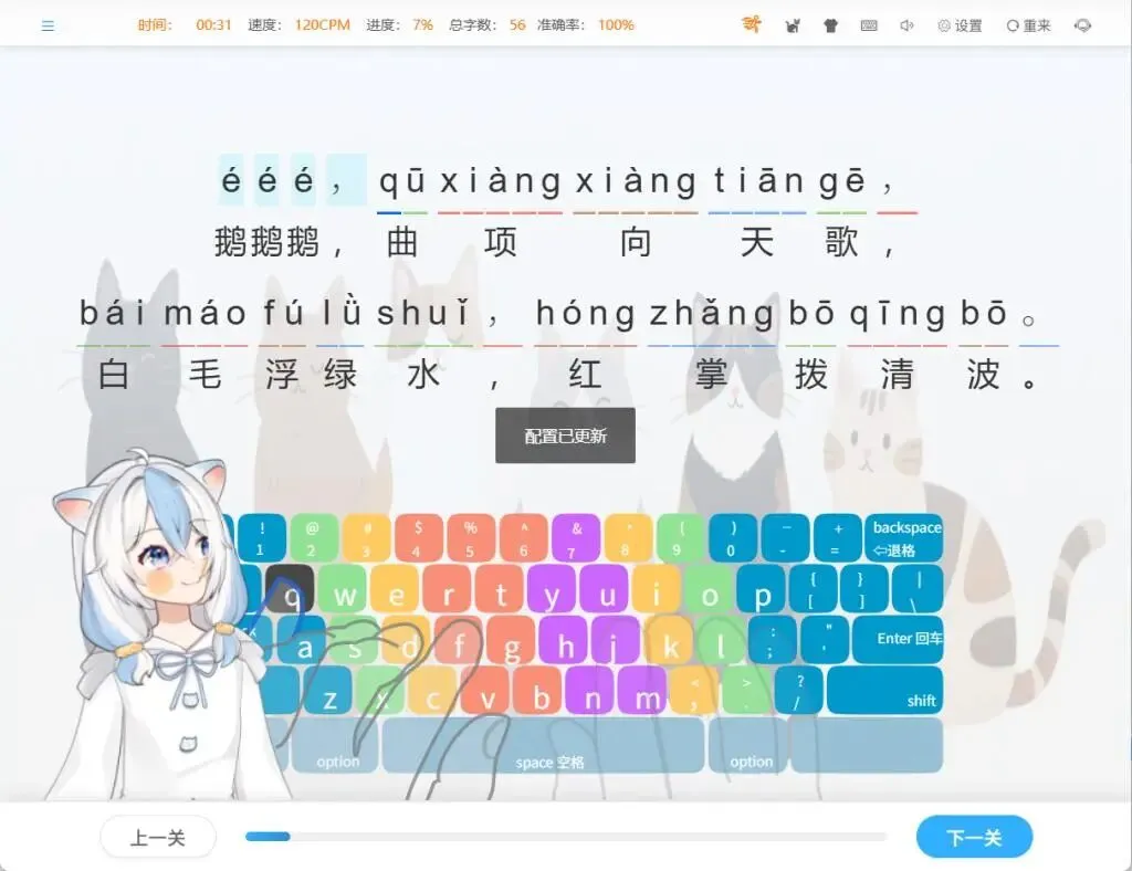 这拼音训练也是一步步来,先从声母 b、p、m、f,韵母 a、o、e、i 开始,再到完整的音节,比如 ba、pa 这些,然后是常用的词语和句子。最贴心的是,每个拼音都有对应的汉字,还有标准发音。就像练 “zhong” 这个拼音,不光能熟悉 Z、H、O、N、G 这几个键,还能看到 “中” 这个字,听到怎么读,指法、拼音、汉字、发音一块儿学,多省事儿。