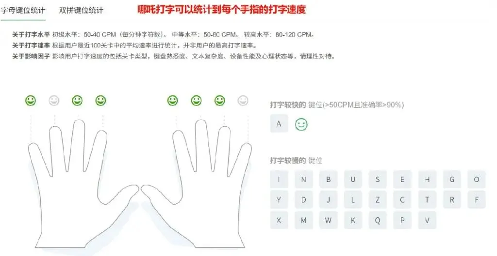 好多人练了半天没进步,就是因为一直在做 “无效练习”—— 总在自己已经熟了的键位和内容上打转,真正不行的地方反而不管。想进步快,就得靠着数据,有针对性地练。
