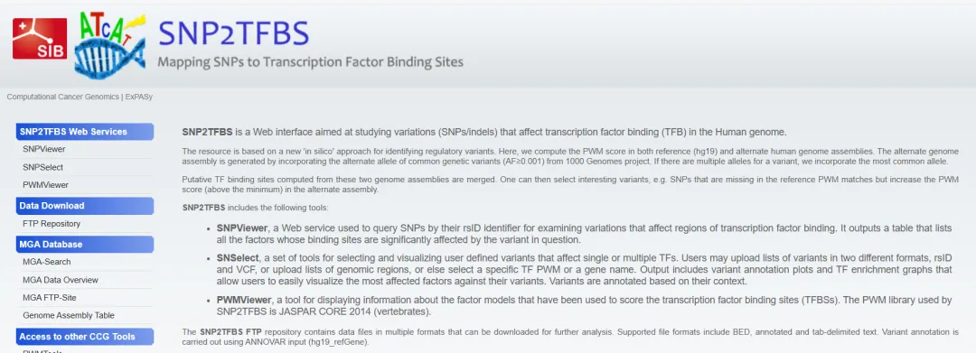SNP2TFBS 是一个旨在研究影响人类基因组中转录因子结合(TFB)的变异(SNPs/indels)的网页。