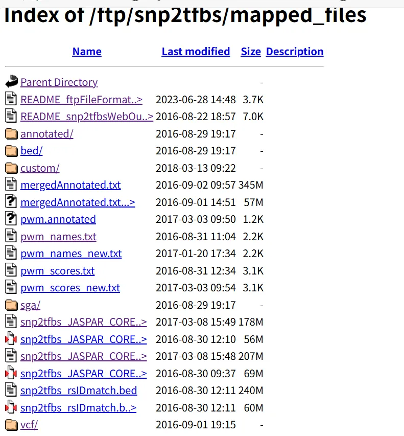 *mapped\_files/ | 包含所有SNP2TFBS分析结果 |