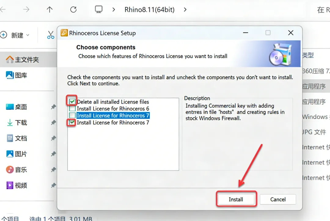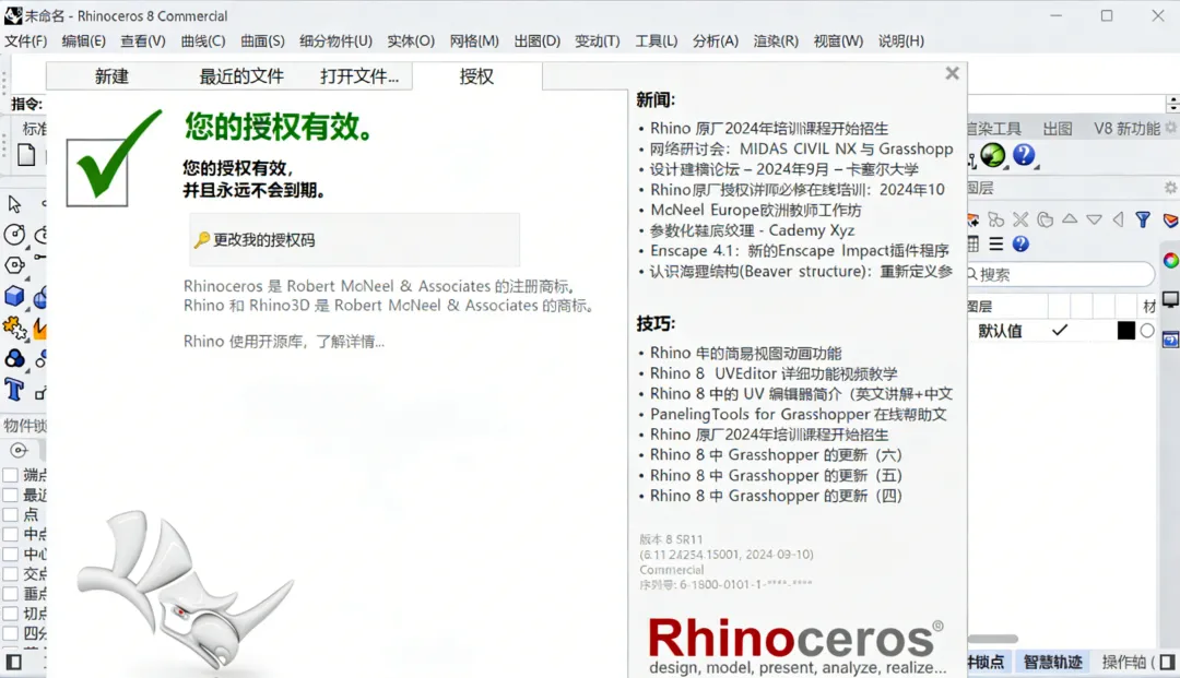 Rhino8.26版本的安装教程与8.11的安装教程完全一致,参考如下:
