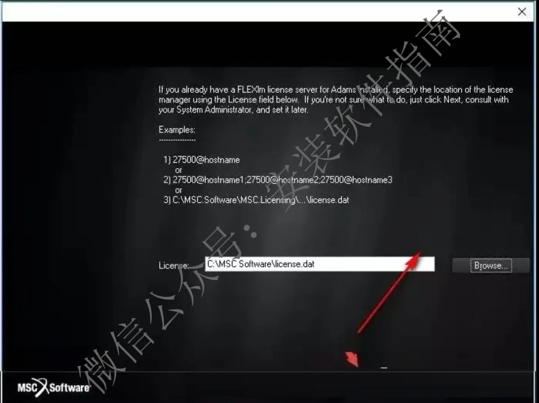 8.如图所示,从C:MSC Softwarelicense.dat找到您的文件,打开以后点next
