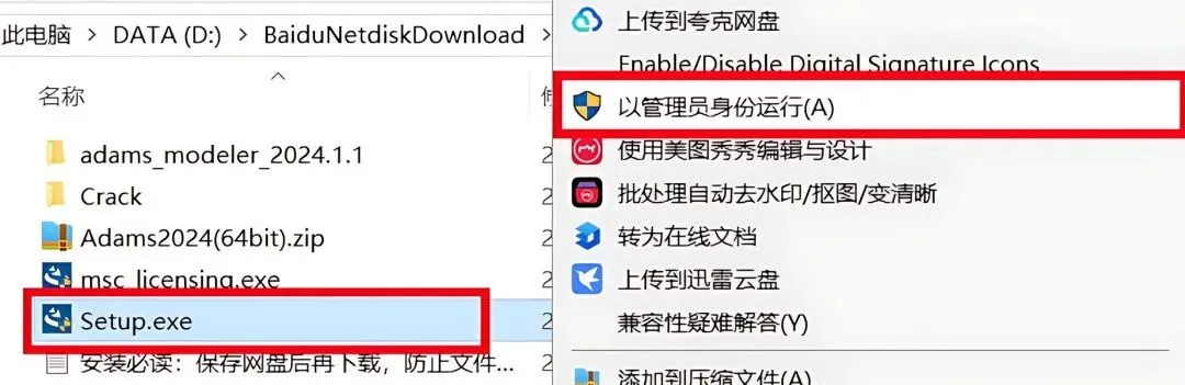 1.下载ADAMS2024软件安装包到电脑上,右键选择【解压到当前文件夹】。