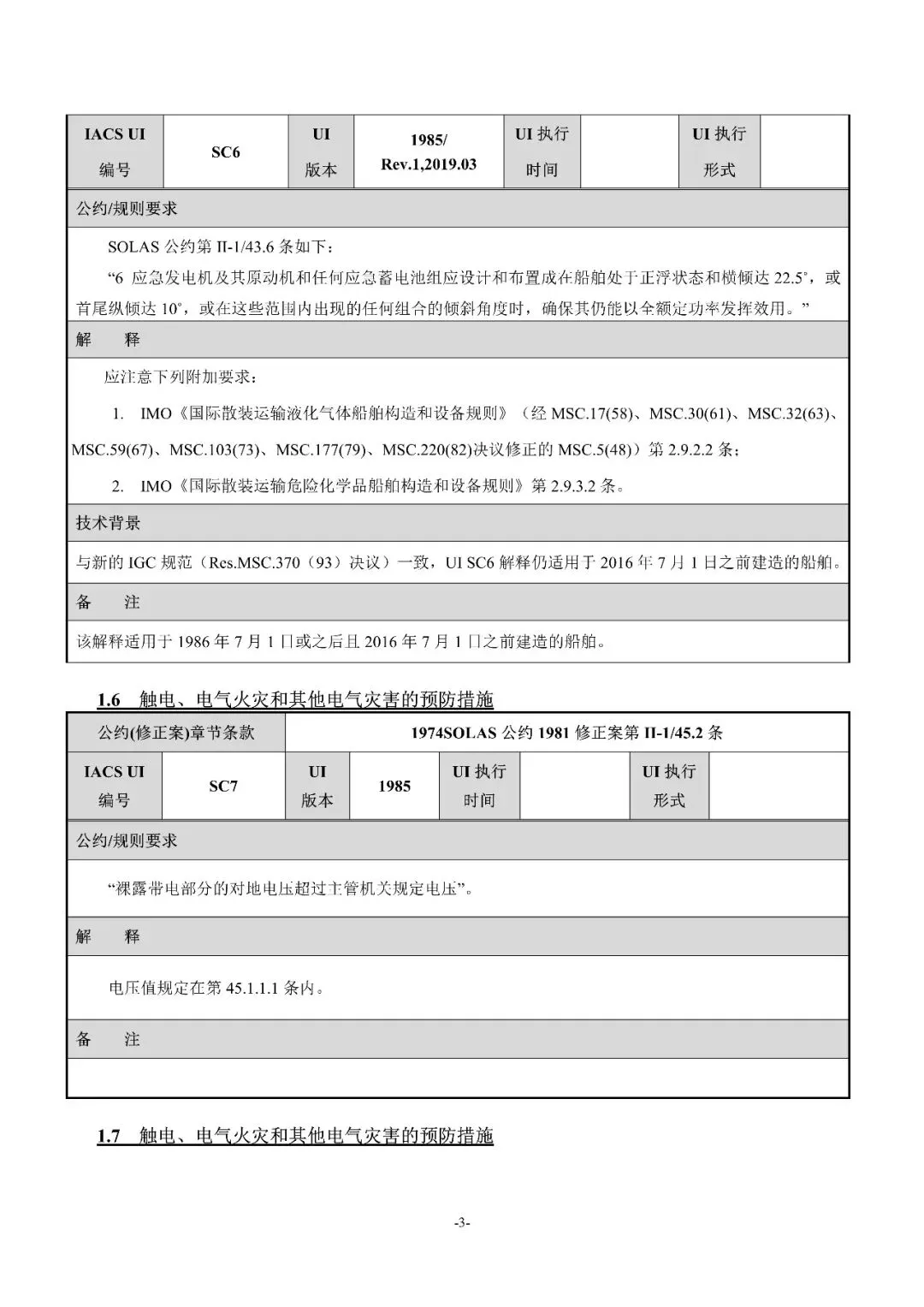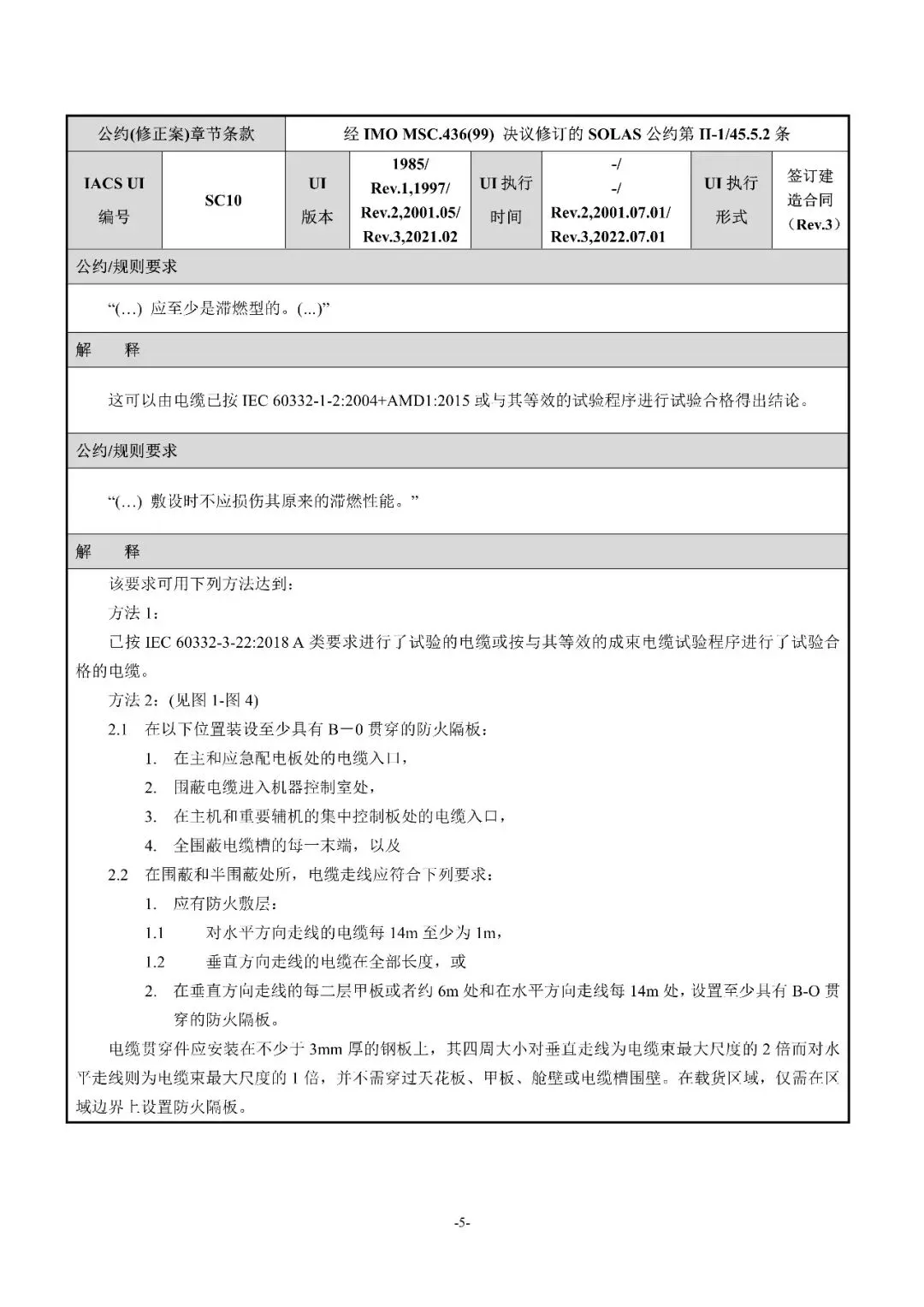Rev.2:尽管UISC11(Rev.1,2021.02)把高度失火危险区域的澄清引至SOLAS公约第II-2章第9条,但引用的条款没有明确哪些处所是"其他有高度失火危险的区域",Safety Panel修订本UI以进一步澄清"其他有高度失火危险的区域"。