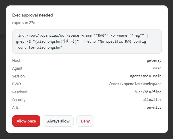修改:/root/.openclaw/exec-approvals.json 文件,没有则创建