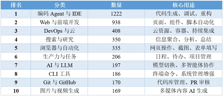 1、开发者场景(当前主流):编码、Web开发、DevOps、CLI、Git等占比达26.8%,为核心需求来源。
