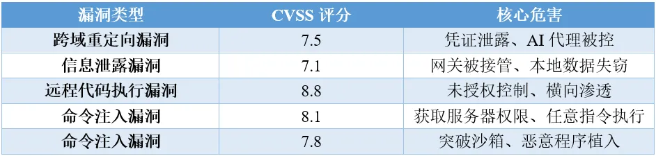 表6:OpenClaw存在的高危漏洞