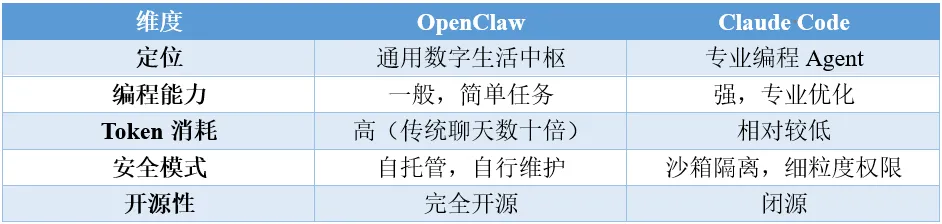 表7:OpenClaw与Claude Code对比