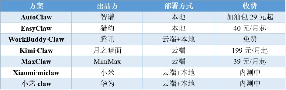 表8:国内厂商推出的类Claw产品