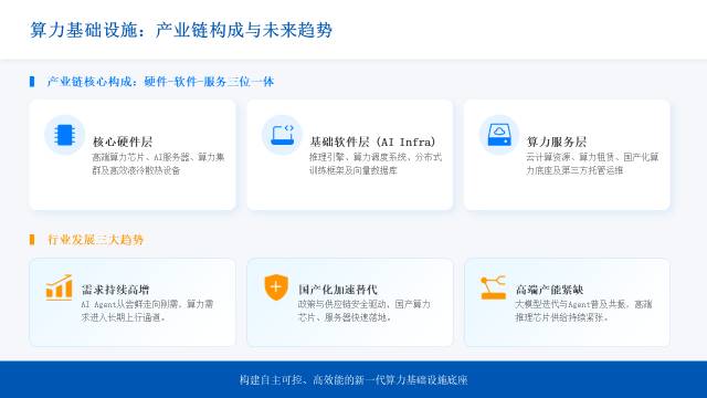 2、算力基础设施国产化加速:政策与供应链安全双轮驱动,国产算力芯片、服务器、底座快速替代;