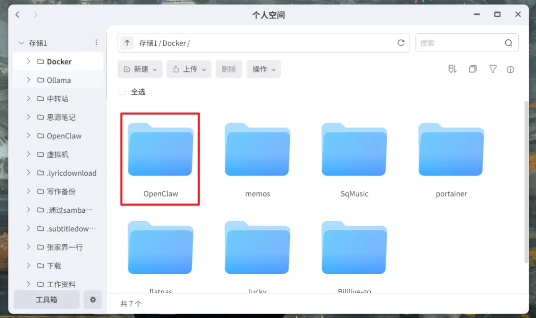 🔺打开极空间NAS的文件管理器,在Docker目录下新建一个“OpenClaw”的文件夹。