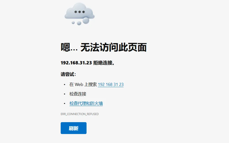🔺如果说你这个时候就着急和平时打开普通Docker容器一样,使用【IP:18789】的方式打开OpenClaw的Web UI界面,很有可能就是图中的样子打不开。