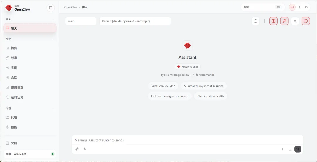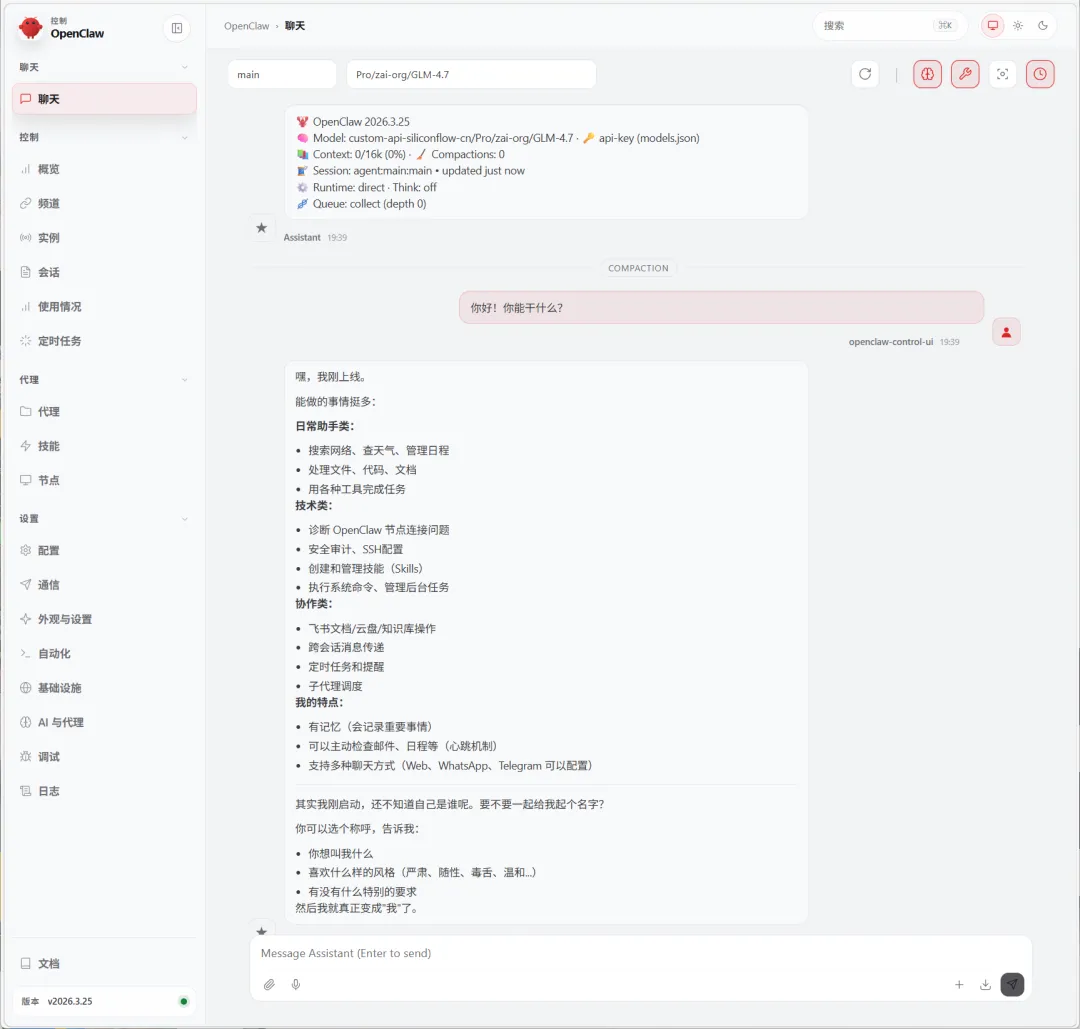 🔺这个时候就顺利打开网页端,并且也没有任何报错。此时可以说我们已经完全搞定了小龙虾的NAS本地部署了。