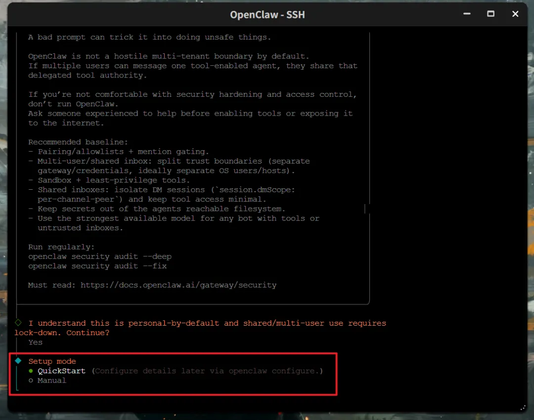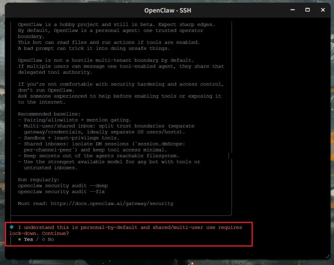 🔺首先是一个安全提醒,选择“Yes”之后回车。
