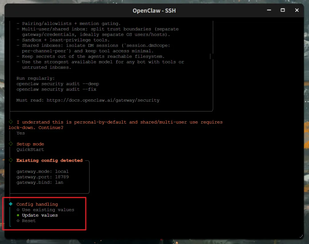 🔺Config handling(配置管理)这里请务必选择第二项“Update values”。