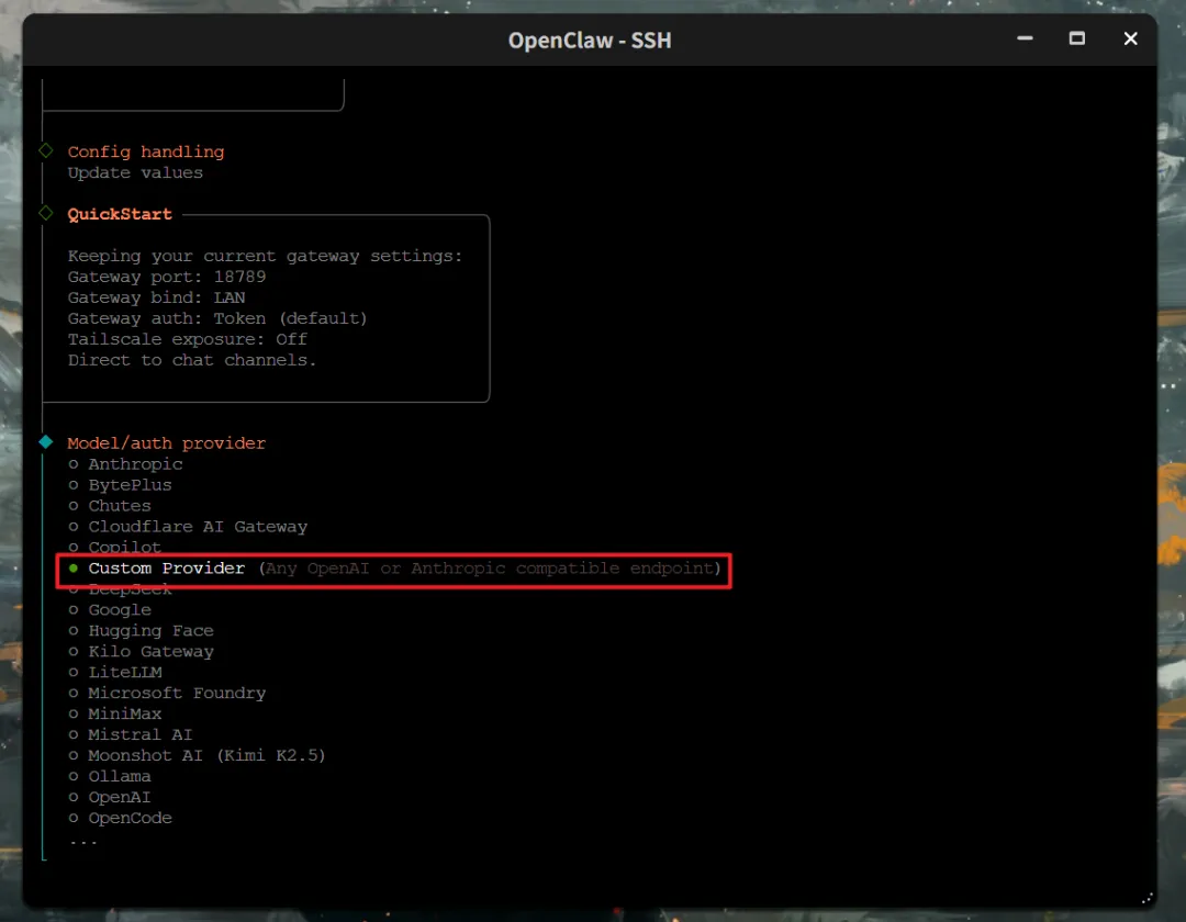 🔺然后就是配置大模型的选项了,我使用的是硅基流动大模型,这里需要选择“Custom Provider”。