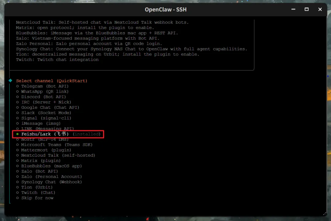 🔺飞书这边最好也在这里给设置好。虽说目前飞书官方已经发布了一键关联插件,但是它的那个插件对于Docker的部署环境支持的不是很友好,所以我们还是在这里设置就可以了。关于如何操作之前发过专门的教程,其他大佬发布的也有,还不清楚的建议先去学习后再回来继续操作。