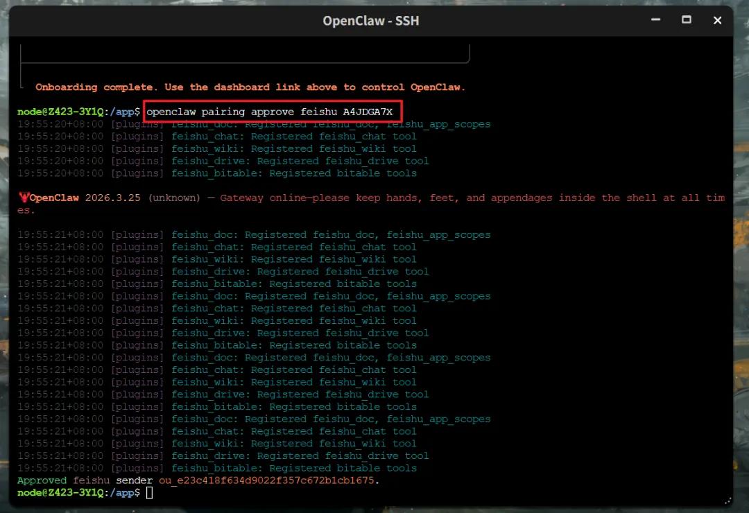 🔺然后将代码粘贴到OpenClaw的终端并回车,就算正式对接上了。