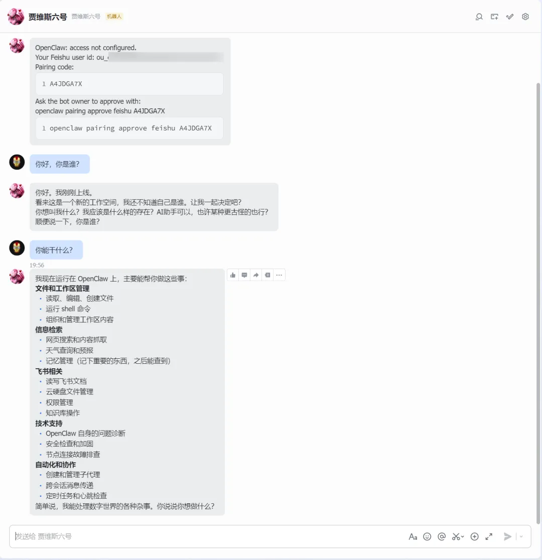 🔺不得不说,国内使用环境下,OpenClaw最好的体验还是对接飞书之后。飞书这边不管是适配度、友好度,以及开放程度可以说是所有交互最高的。