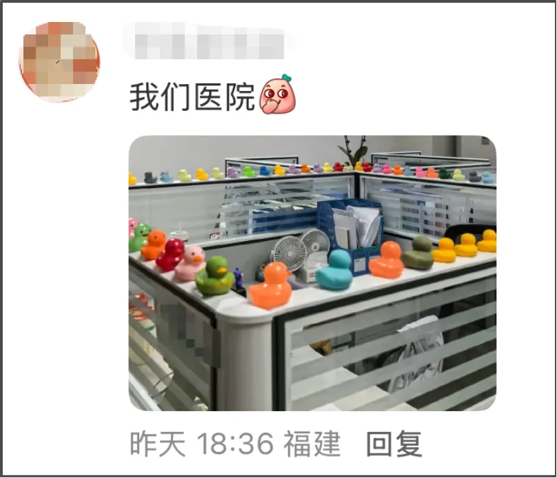 本以为这些鸭子只是某位医护的个人爱好,毕竟医护也是牛马,牛马装修自己的工位理所当然。