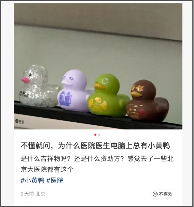 面对幼儿患者时,小黄鸭是当之无愧的社交货币,随手拿出一个鸭子贿赂小孩,就能保证小孩不哭不闹,乖乖配合检查、打针、吃药。
