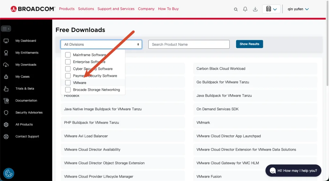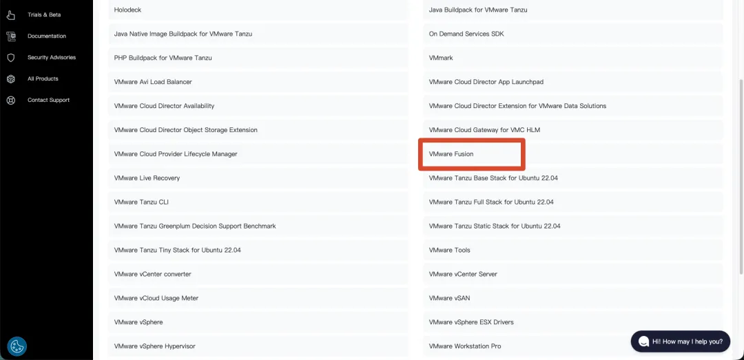 这个时候进来之后记得选择VMware过滤一下,不然当前页面的产品太多了,不好找。