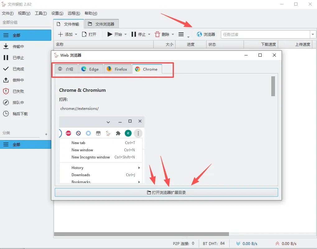 这个一定要装,因为它是灵魂所在。装好之后,它就能接管你浏览器的默认下载,再也不用忍受浏览器自带那个慢吞吞的下载器了。以谷歌浏览器为例,参考软件给出的教程,开启开发者模式后,直接把下面图片箭头所指那个扩展插件拖到上面,开启后即可使用嗅探。