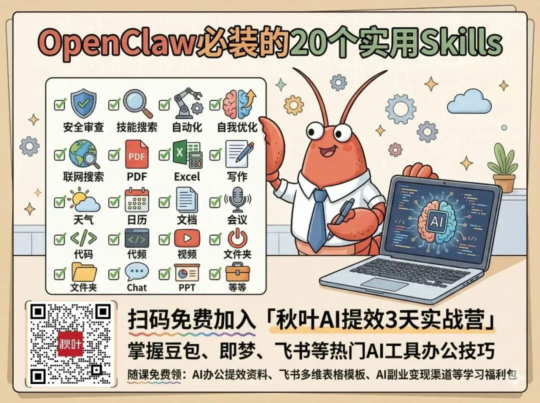 把这些 Skill 安排上,你的“龙虾”就会直接变身六边形战士,轻松搞定各种办公难题!