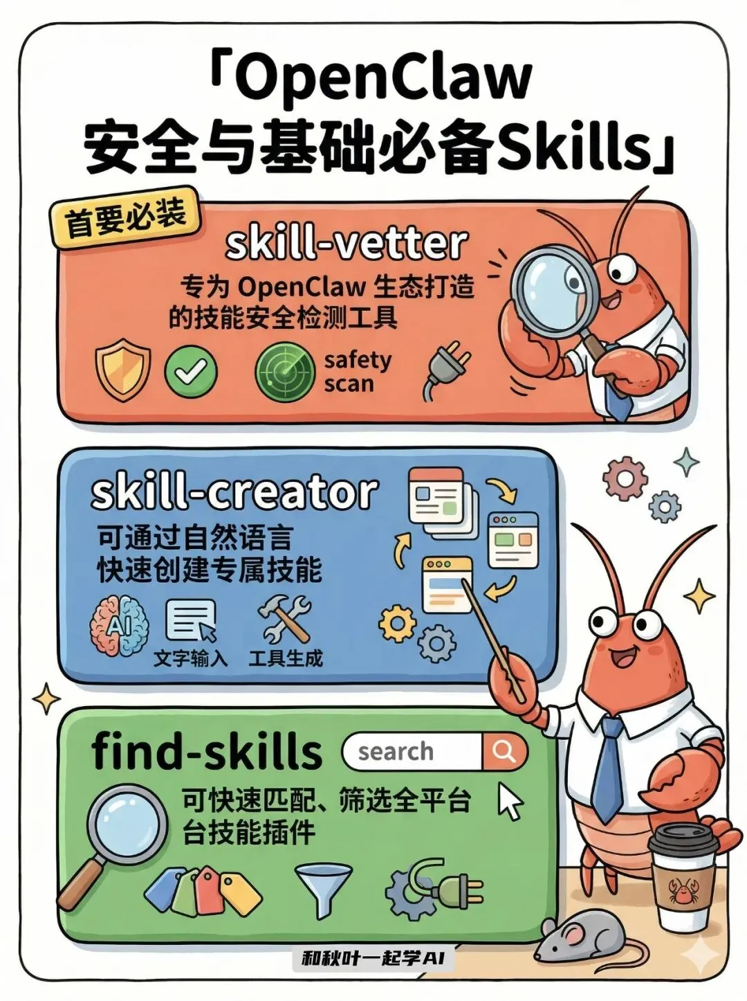 ✅安全把关:新技能下载后先用skill-vetter审查,确认无风险再安装。
