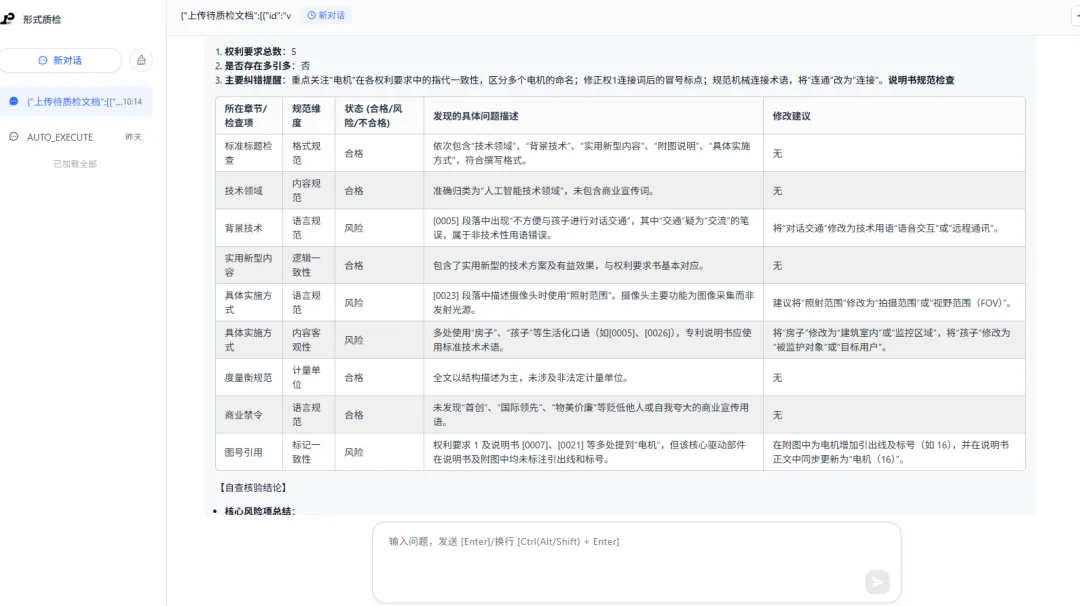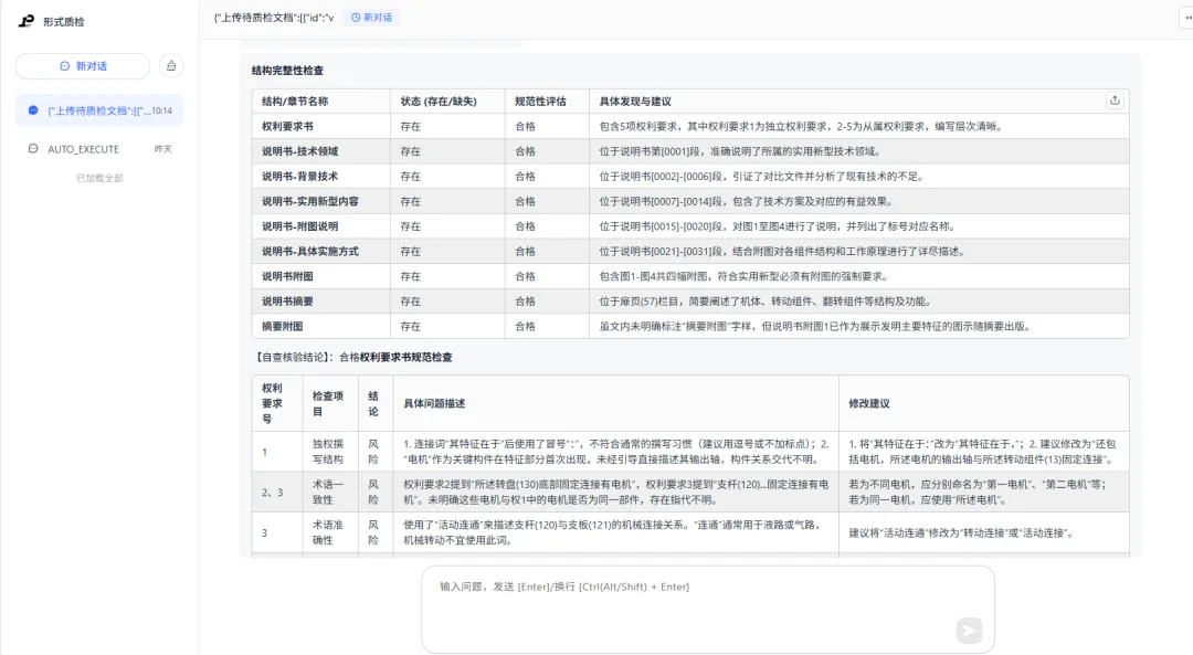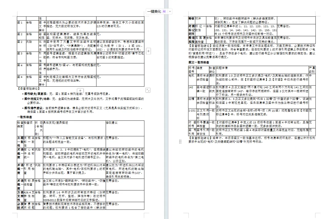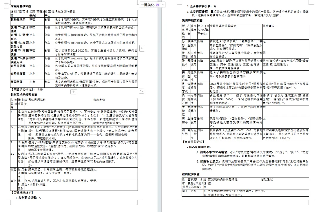 IPGET在撰写过程中自动保持全文术语统一,确保表述准确、规范,符合专利审查要求。还有形式质检功能可检测平时撰写文档,案子导出如图所示: