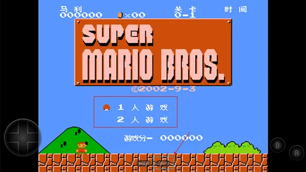 1、进入游戏,首先会展示一段马里奥闯关的一个画面,在画面中选择要闯关的人数,点击“start”;